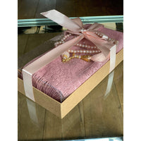 A beautiful luxury ladies head scarf elegantly packed in a gift box with matching 99 beads tasbeeh.