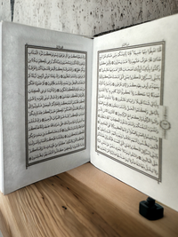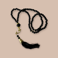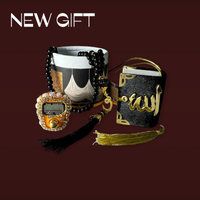 This exquisite Kiswa Inspired Opulent Gift set includes an embellished digital tally counter tasbih dazzling with hand finished rhinestones to count your prayers with precision and grace. Accompanying this gem is a mini full Quran housed in a lavish velvet-textured binding with golden Arabic calligraphy, allowing you to reflect upon the Holy words with reverence wherever you go. Completing the set are the sleek black ninety nine tasbih beads, each one carefully crafted to aid in your Dhikr with serenity and poise.