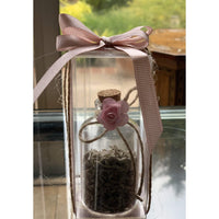 A fragrant Islamic Gift of dried lavender leaves in a traditional bottle, stylishly gift packed with a plush ribbon and a jute cord for an authentic look.