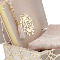 ZANBEAL Sacred Reflections Islamic Gift set: Velvet Quran Box with Prayer Mat and Pearl style Tasbih