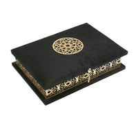 Enrich your personal collection with our exquisitely crafted Quran Box Set, a tangible piece of tradition that elegantly fuses spirituality with craftsmanship. Each set, available in classic black, serene cream, luxurious green, and delicate pink, features a richly textured fabric cover that beckons the touch, while the ornamental, geometric Islamic art-inspired designs in gold-tone add an aura of timeless grace.